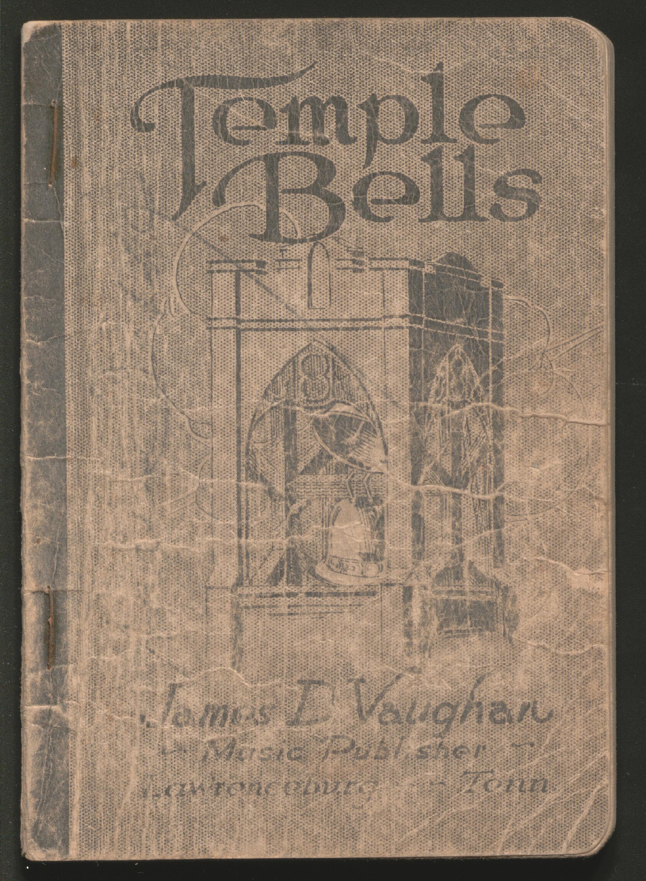 Title Page TextTEMPLE BELLS | FOR | Sunday-Schools, Singing-Schools, | Revivals, Conventions | and General Use in Christian Work and Worship. | AUTHORS : | JAMES D. VAUGHAN | B. C. Unseld, | W. W. Combs, | Chas. W. Vaughan, | C. J. Williams, | M. D. McWhorter, | G. K. Vaughan, | J. C. Lenderamn, | A. M. Pace, | R. N. Grisham, | W. W. McGlamry, | Otis Deaton, | Mrs. R. N. Grisham, | James Rowe, | J. D. Ball, | V. O. Stamps, | W. B. Walbert, | J. P. Thomason, | J. W. Vaughan, | C. C. Stafford, | J. E. Marsh, | T. B. Jones. | PRICE: | 35 Cents a copy, $3.60 per dozen, post-paid. | Either Round or Shaped Notes. Manila Binding. | JAMES D. VAUGHAN, | Music Publisher, | LAWRENCEBURG, TENN. | Copyright, 1921, by James D. Vaughan.Physical Description-